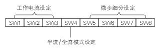 由 SW1-SW3 三个拨码开关来设定驱动器输出电流,其输出电流共有8档。具体输出电流的设定,请驱动器面版图说明。 |