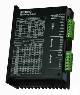 产品概述 SC_MD882是采用伺服纯正弦精密电流控制技术,等角度恒力矩高细分型步进电机驱动器。该技术可以明显改善电机噪音和运行平稳性,步进脉冲停止100m/s。最大驱动电流7.8A,最高定位精度64细分可达12800步/转.